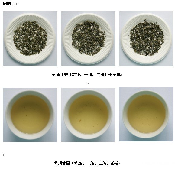 茶 样 名:蒙顶甘露(特级、一级、二级) 制样单位:中国茶叶流通协会培训部