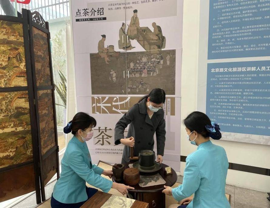 咨询员为游客介绍点茶技艺。 信息时报记者 郭柯堂 通讯员 穗文广旅宣 摄