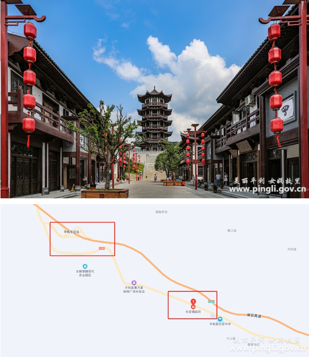 长安镇是国家AAA级旅游景区,位于陕西省安康市平利县东南部,距县城8公里,东与湖北省竹溪县接壤,地貌四山夹三川,总面积227平方公里。308省道和长安河纵贯镇域,境内茶资源丰富,茶香四溢,美景如画。洪福茶山以茶园观光体验、休闲商务、度假旅游为核心,融合茶产品加工、茶文化推广、生态观光、休闲度假于一体。碧波万顷的茶园与徽派建筑风貌交相辉映,特色城镇如置画廊,游人至此,流连忘返,文人雅士,怡神于斯。