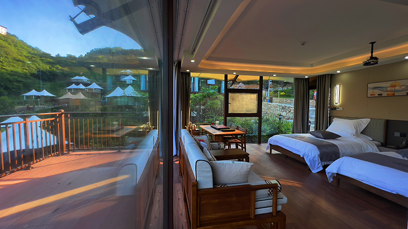 从信阳市区乘坐旅游专线巴士L2或自驾前往位于董家河镇东3公里的楼畈村,途欣赏信阳乡村的田园风光,感受远离城市喧嚣的宁静。楼畈村花团锦簇,竹林清幽,道路便利宽阔,屋舍造型雅致古朴,青砖白瓦在蓝天白云下甚是养眼,仿佛诉说着美丽乡村宜居惬意的品质生活。中午前往归拙园,庄园设计精巧优美,依溪而建,讲究十步一景,小中见大。中午在这里品尝地道的信阳农家菜,食材均取自当地,新鲜天然,让您的味蕾尽情享受乡村美食的独特风味。下午前往4A级景区何家寨露营基地。在这里闻鸟鸣、见鸟影,赏茶园,临风凭栏,仰望无限江山,面对绿水青山,品一杯清茶,解锁幸福密码。养心谷、茶香谷、将军岭、观星台四大住宿区域被悄然放置在山水茶园之间。游客可在天空之镜游乐项目翩翩起舞,可乘坐玻璃水滑道螺旋盘绕而下,蜿蜒于密林之中,仿佛空中漂流一般。可夜宿目前中原地区最大的特色帐篷住宿群,听鸟语闻茶香看繁星点点。