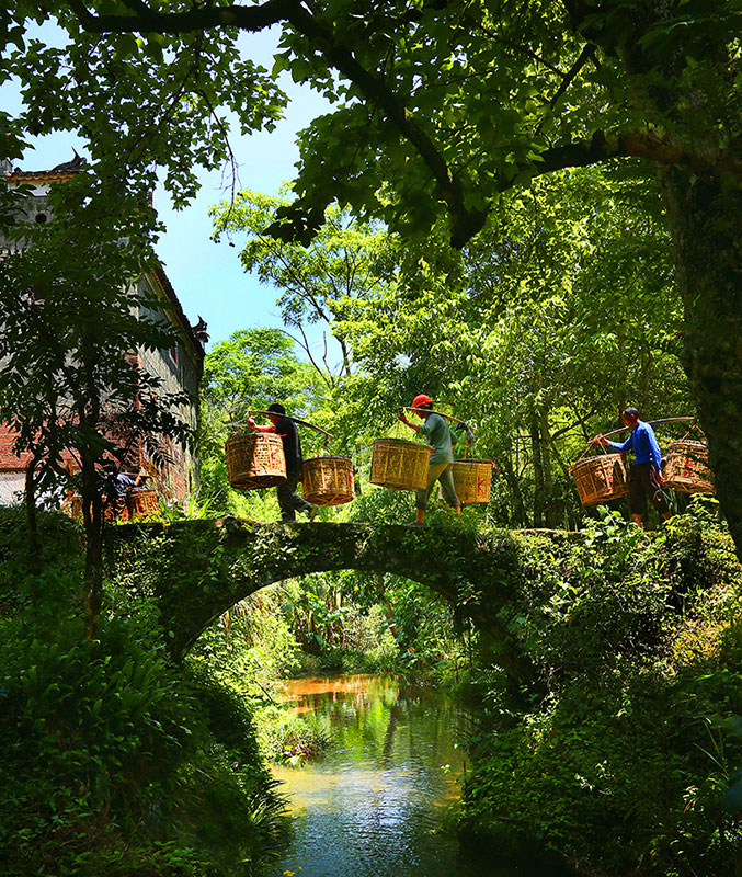 上午:参观万里茶道起点——下梅民俗文化村, 感受清代“每日行筏300艘,转运不绝”的武夷茶市盛景。徜徉在当溪两岸,穿行于明清古宅间,体验武夷茶人家生活,还可以寻一小店,品尝武夷茶小吃;