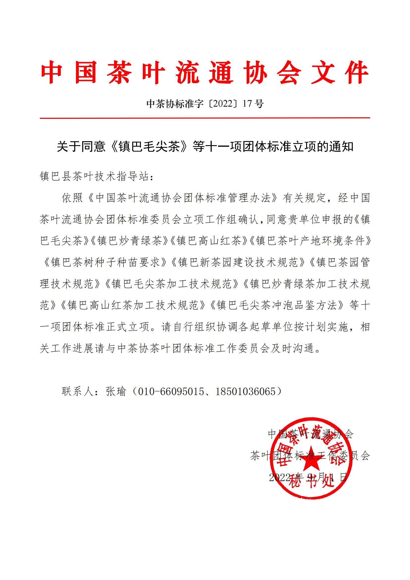 关于同意《镇巴毛尖茶》等十一项团体标准立项的通知