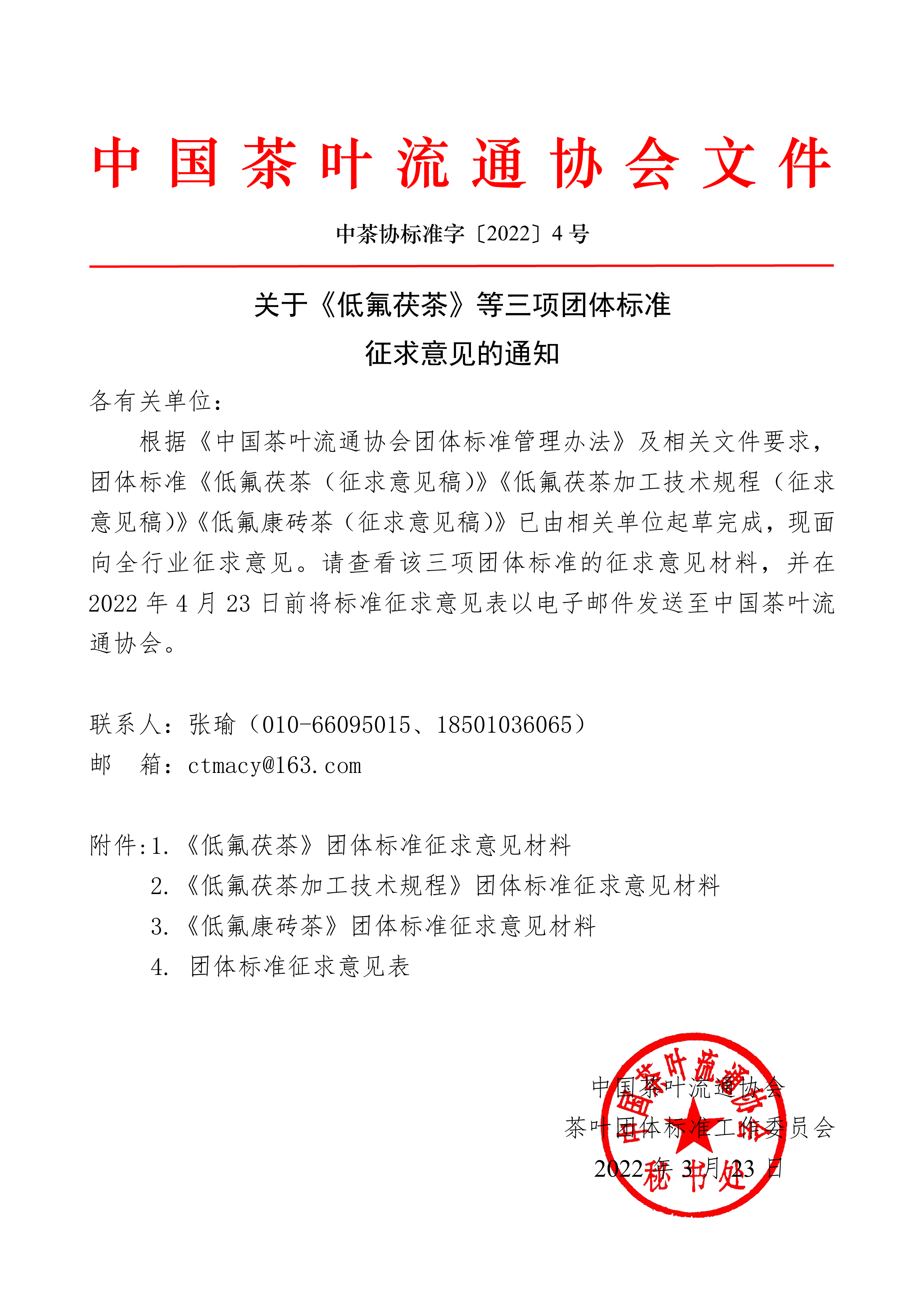 关于《低氟茯茶》等三项团体标准征求意见的通知