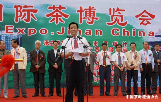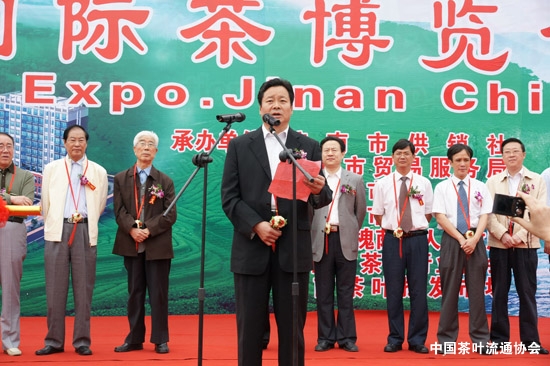 中国茶叶流通协会常务副会长王庆、山东省原副省长、山东省茶文化协会会长王裕晏、山东省政协副主席李德强、市供销社党委书记、理事会主任孔放、济南市人大副主任刘善鹏、副市长赵文朝、市政协副主席王世敦及部分省市老领导和来自全国各产茶县的相关领导出席了茶博会的开幕式,开幕式上王庆会长、王裕晏副省长等先后致词,开幕式由济南市政府副秘书长孙元文主持。开幕式后,济南市供销合作社与济南市旅游局联合在现场举办了济南首家旅游购物景点揭牌仪式,济南茶叶批发市场成为济南首家旅游购物定点市场。