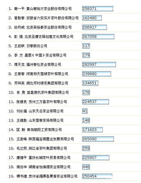 2009中国茶叶行业年度经济人物候选人网络投票于今日截止,共收到1438689票。