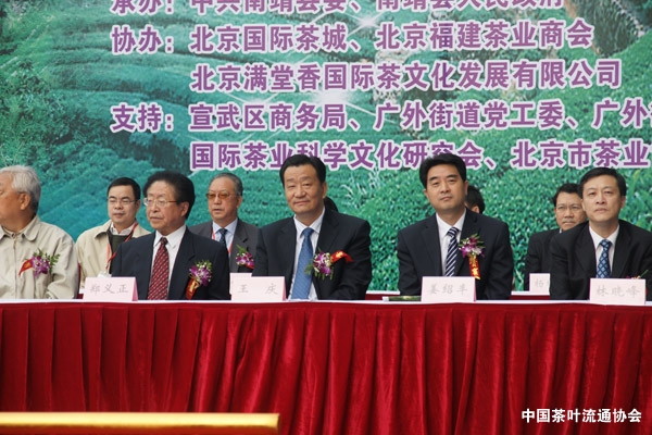 第十届全国政协副主席张思卿,中国茶叶流通协会常务副会长王庆,第九届福建省人大常委会副主任郑义正,海军潘建新将军,国家农业部影视中心主任林亚东,中央电视台海外中心新闻部主任杨刚毅,北京市宣武区政府常务副区长杜灵欣,福建省农业厅副厅长姜绍丰,福建省文化厅副厅长陈立华,漳州市委常委、统战部长游婉玲,漳州市委常委、宣传部长林晓峰,漳州市政协副主席庄振生,福建省农业厅、漳州市农业局、北京市宣武区有关部门领导,以及福建省南靖县籍在京乡亲,北京茶业界、旅游界人士,南靖县有关领导干部、茶商代表等出席了开幕式。