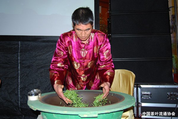 洞庭山碧螺春制作技艺传承人施跃文为大家现场炒制碧螺春茶
