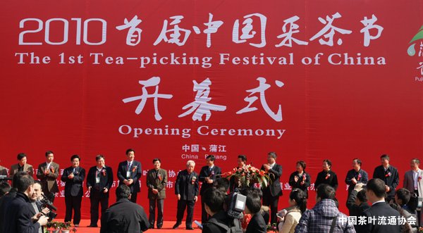 3月16日,由中国茶叶流通协会和成都市人民政府共同主办,蒲江县人民政府承办的“2010首届中国蒲江采茶节”在蒲江县成佳镇同心村万亩茶叶基地隆重开幕。
