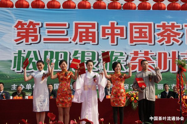 开幕式上,中国茶叶流通协会授予松阳县为“全国重点产茶县”,并举行了授牌仪式,同时,松阳县还获得了“中国农产品区域公共品牌百强”、农业部标准茶园(创建)示范区等荣誉称号,北京市宣武区与浙江省松阳县签署了茶叶质量监管协作备忘录。