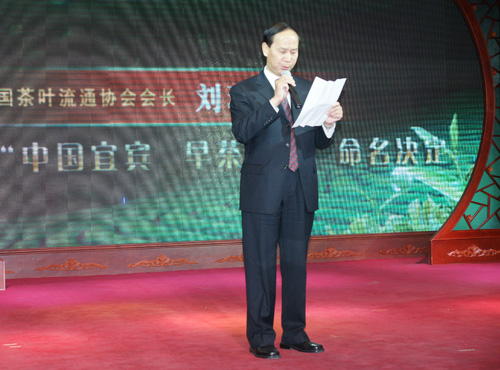 为了进一步促进宜宾早茶产业的发展,宜宾市人民政府向中国茶叶流通协会申请命名宜宾市为“中国宜宾早茶之乡”。中华全国供销总社监事会主任、中国茶叶流通协会会长刘环祥在品鉴会上宣读了协会命名宜宾市为“中国宜宾早茶之乡”的批复。全国政协副主席白立忱向宜宾市人民政府颁发了“中国宜宾早茶之乡”牌匾。
