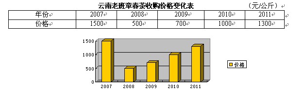 据资料显示,2008年普洱茶价格一度回落到2005年的水平。2008、2009年,云南省政府积极指导全省调整产品结构,扩大绿毛茶、红毛茶加工比例,通过普洱茶连续两年的大幅减产,为普洱茶价格的恢复起到了积极的助推作用。