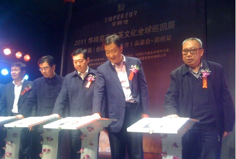 11月13日2011华祥苑东方茶文化全球巡回展暨金豫眉(信阳红巅峰之作)品鉴会在河南郑州举办,中国茶叶流通协会常务副会长王庆出席活动并启动郑州站的活动。