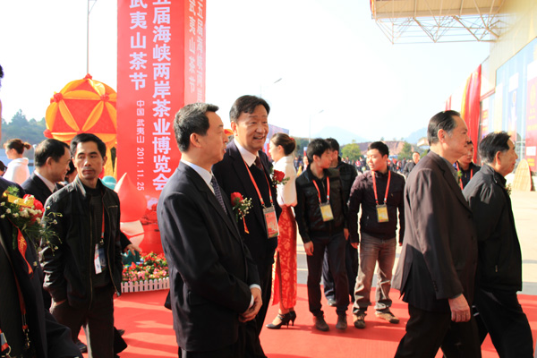 “缘聚武夷,茶和天下”。为进一步弘扬中国茶文化,促进海峡两岸茶叶经贸交流与合作,由福建省人民政府、国台办、农业部、海峡两岸关系协会、中华全国供销合作总社等国家有关部委与中国茶叶流通协会、台湾区制茶工业同业公会、台湾区茶输出业同业公会等行业社团组织共同主办的“2011第五届海峡两岸茶业博览会暨武夷山茶节”于2011年11月25日在福建南平武夷山国际会展中心隆重开幕。