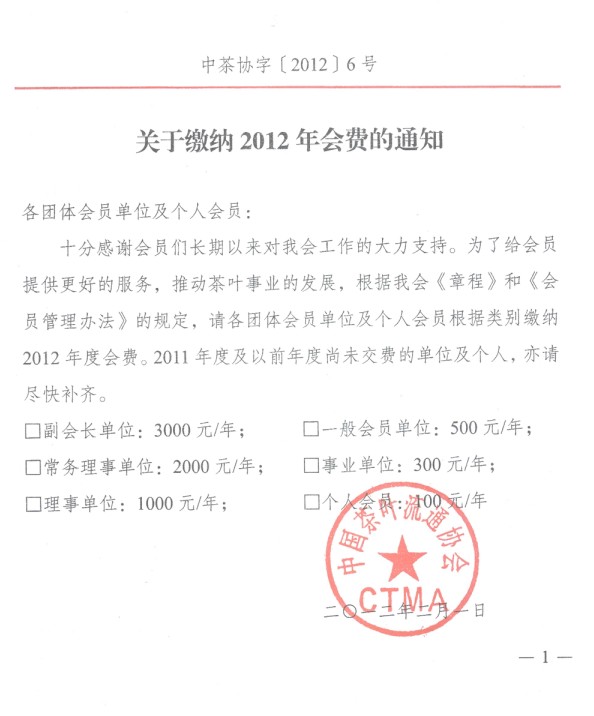 关于缴纳2012年会费的通知