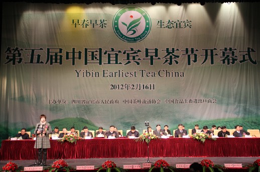 中国茶叶流通协会常务副会长王庆在开幕式上致辞。他首先对本次盛会的成功举办表示热烈的祝贺,并对宜宾茶产业近年来所取得的成绩给予充分肯定。他说,近年来,宜宾市委、市政府充分依托本地茶叶龙头企业的带动作用,通过举办各种推介活动,深入挖掘与宣传宜宾茶叶资源优势,全面推进茶文化和茶产业建设,茶业经济发展取得显著成效。宜宾现已成为四川省最大的茶叶生产区,全国最大的早茶生产基地,茶产业成为农民增收的重要支柱型产业,成为农村结构调整和农业产业化建设发展的重要途径之一。由宜宾市人民政府与中国茶叶流通协会通力合作、连续举办五届的“中国宜宾早茶节”,既是对历史的传承,更是对未来的展望和开启;既是一个茶产业发展的盛会,也是一个茶文化交流的盛会,更是一个立足四川、面向全国、融入世界的茶界开放的重要平台。