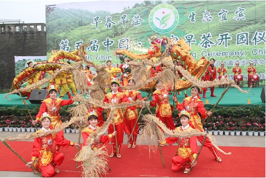 随后进行的“二龙点睛”、“二龙抢早茶”、“焚烧草龙”等主题表演为开园仪式增添了祥瑞的气氛,中国茶叶流通协会常务副会长王庆与宜宾市人大常委会副主任刘虹共同为巨龙点睛。
