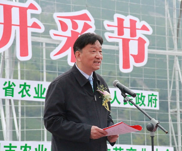 中国茶叶流通协会常务副会长王庆在安吉白茶开采节上致辞
