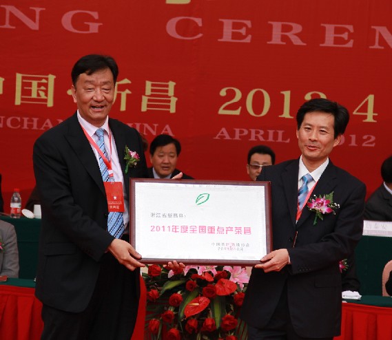 我会授予新昌县“2011年度全国重点产茶县”