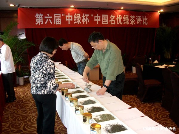 本届“中绿杯”评比由来自中国茶叶流通协会、中国国际茶文化研究会、中国茶叶学会、浙江大学、浙江省农业厅等单位的10位国内资深专家组成评审组,他们在评比中首先对茶叶的外形、滋味、香气、汤色、叶底等项目分别进行对比评分,最后进行汇总计分并根据总分对参评的茶样进行排名。经过两天的评比,共确定金奖茶样50个、银奖茶样30个、优质奖50个。