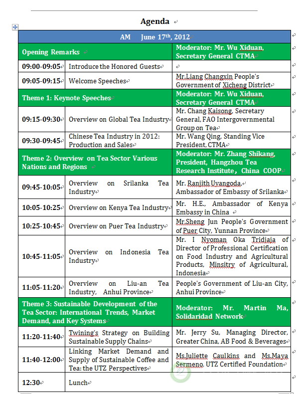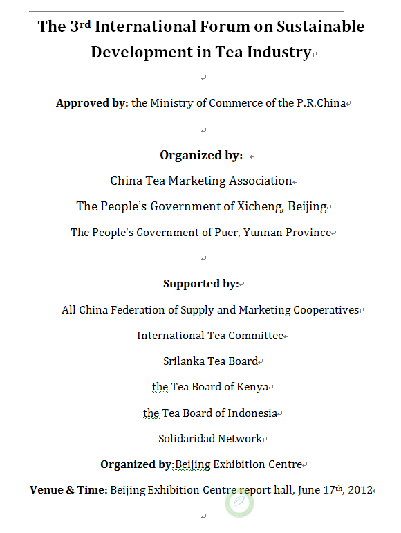 传堂书记就“国际茶产业可持续发展论坛”做重要批示