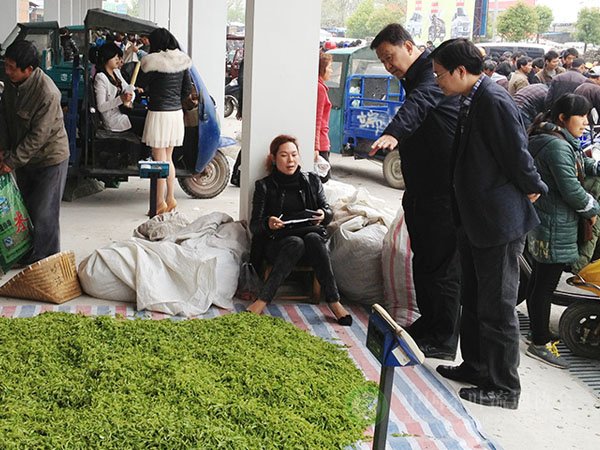 28日,王庆会长一行首先抵达松阳县新兴镇生态茶园进行实地调研,具体视察了茶园基础实施建设、茶树病虫害防治、茶园标准化生产管理等,同时听取了松阳县政府和新兴镇政府有关部门负责人对于松阳茶产业发展建设情况的介绍。随后,王庆一行进入新兴镇茶叶交易市场,实际调查了解了当地早春茶鲜叶原料的收购价格和市场交易情况。