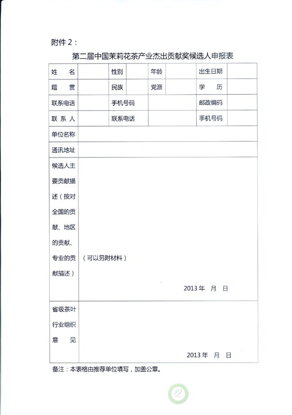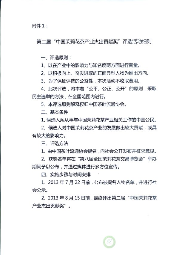 关于开展第二届“中国茉莉花茶产业杰出贡献奖”评选活动的通知