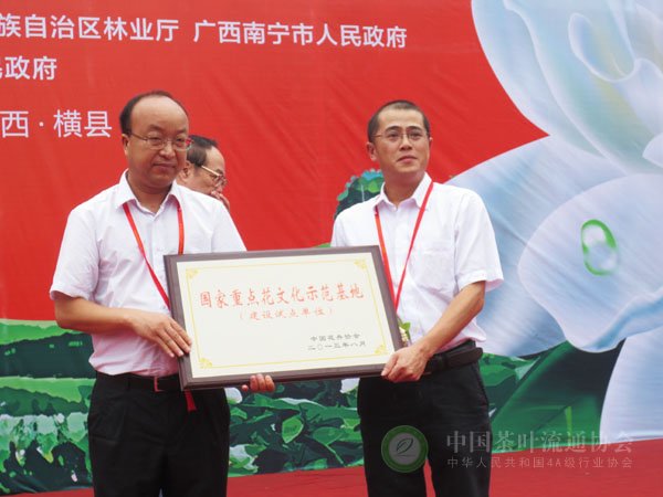 会上,中国茶叶流通协会还颁发了“全国茉莉花茶质量评比金奖”、“中国茉莉花茶十大品牌企业”、“中国茉莉花茶产业杰出贡献奖”、“茉莉花优秀种植户”等行业奖项,中国花卉协会授予横县人民政府“国家重点花文化示范基地(建设试点单位)”称号。