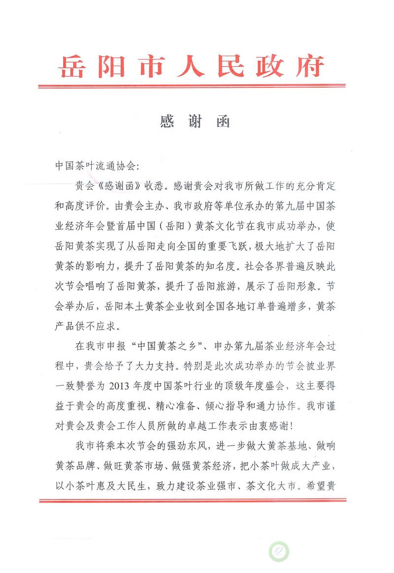 岳阳市人民政府致我会的感谢信