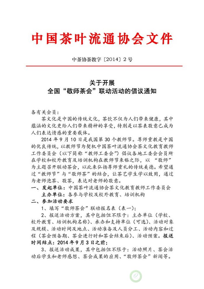 全国“敬师茶会”联动活动倡议通知