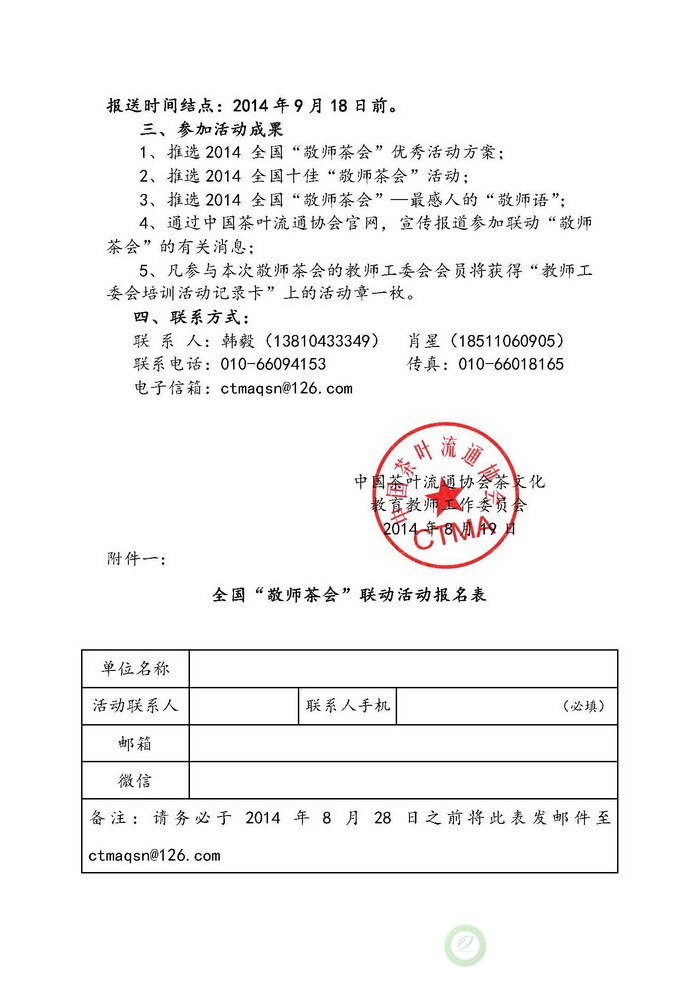 全国“敬师茶会”联动活动报名表