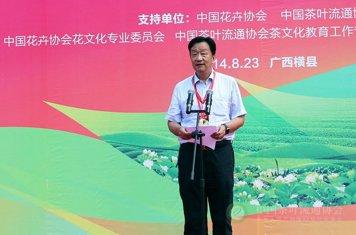 王庆会长在致辞中表示:近年来,横县坚持“标准化•国际化”的理念,成功引进了一批茉莉花茶标准化加工示范项目,培育发展了一批有自主品牌的花茶加工企业,打造“五中心一平台”,构筑了茉莉花茶产业发展新高地,促进了全国茉莉花茶市场的稳定和繁荣。今后,中国茶叶流通协会将一如既往地关注、支持横县办好茉莉花文化节,相信在各级各部门的大力支持下,在社会各界人士的积极参与下,茉莉花文化节一定会越办越好,横县的茉莉花产业一定会实现新的更大跨越!