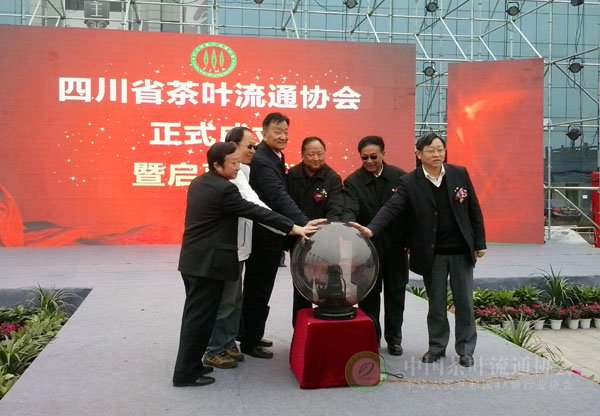 在隆重热烈的气氛中,四川省人民政府原副省长王恒丰宣布四川省茶叶流通协会正式成立,王庆、江用文、孙前、陈勋儒、王云等领导同志共同启动成立水晶球。