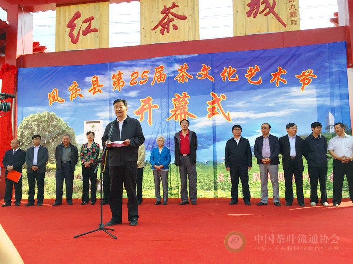 中国茶叶流通协会常务副会长王庆先生代表中国茶叶流通协会对本届茶文化艺术节的成功举办表示祝贺,并呼吁各位茶叶界人士积极支持宣传推介好凤庆,并支持凤庆发展,促进凤庆与全国各地的合作交流,为推动凤庆经济社会发展献计献策。