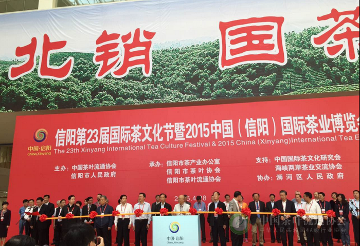 4月28日,信阳第23届国际茶文化节暨2015中国(信阳)国际茶业博览会盛大开幕。 中纪委原常务副书记侯宗宾, 中华全国供销合作总社理事会副主任骆林,浙江省政协原主席李金明,原海军航空兵司令员、中将、中国书画艺术家协会名誉主席马炳芝,河南省人大常委会副主任王保存,河南省人民政府副省长王铁,河南省政协副主席靳克文,国务院参事任玉岭,中国林业经济学会理事长李育才,云南省原副省长、政协原副主席陈勋儒,中共信阳市委书记郭瑞民,中国茶叶流通协会常务副会长王庆,河南省原人大副主任、河南茶文化研究会会长亢崇仁,中国国际茶文化研究会副会长、杭州市原市长孙忠焕,福建省人大常委会原党组书记、海峡两岸茶业交流协会创会会长张家坤等领导出席开幕式。
