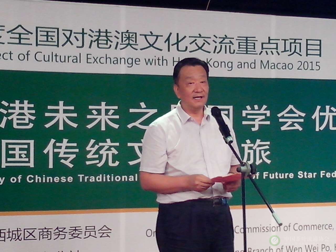 6月17日,“2015香港未来之星同学会走进马连道,体验茶文化”活动在北京马连道更香茶楼成功举行。中国茶叶流通协会常务副会长王庆出席并讲话。王会长在讲话中对来自香港的大学生们说道:茶,产自中国,经由海路及陆路“丝绸之路”走向全球,宣扬着中华民族的文明与富强,承载着华夏儿女的感悟与认知,向全世界传播着健康与友谊,香港曾经是内地茶叶的重要出发地之一。他希望同学们在这次活动中,通过品茶、赏茶、交流茶文化,为促进大陆与香港的团结、合作、共赢发挥积极而深远的作用,同时也邀请同学们参加丰富多彩的“两展一节”活动。