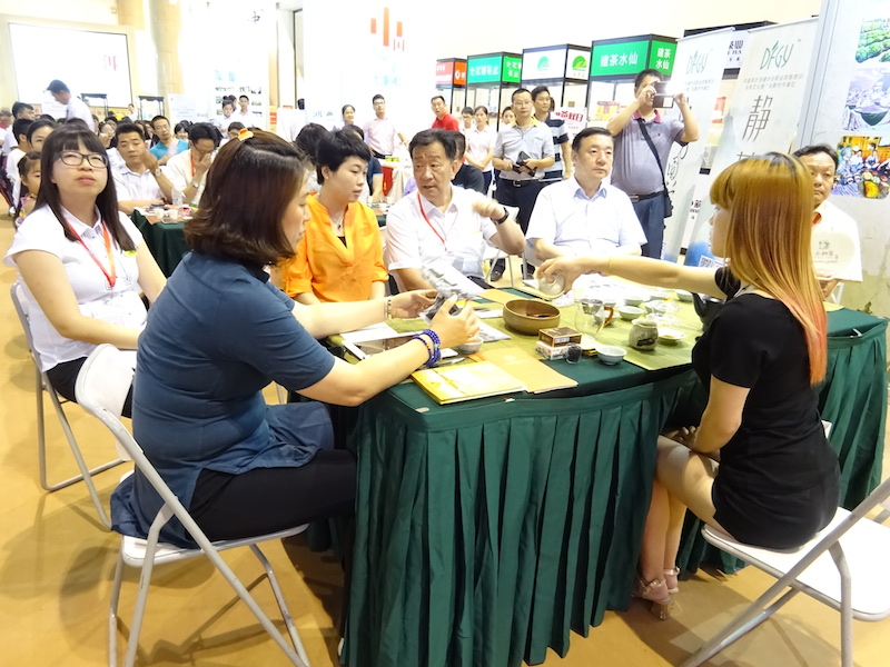 6月21日下午,由中国茶叶流通协会主办的2015北京国际茶业展——中国茶叶名企联合推介会暨餐饮酒店业与茶业合作对接洽谈会在北京展览馆11号馆成功举办。中国茶叶流通协会常务副会长王庆,北京市西城区人大副主任郑然,北京市西城区商务委员会党组书记王毅,英德市、婺源县等市县的负责同志以及星愿茶文化旅游开发有限公司、君山银针茶业有限公司、江西贵士伟业有限公司等茶业名企代表参加本次活动。面对当前的经济新常态,传统茶叶企业和传统餐饮业正在面临转型和升级的新课题,为此,中茶协主办了此次洽谈对接会,旨在帮助茶业界和餐饮服务业加强沟通与了解,推动跨行业间的交流合作。会上,各茶叶企业对本企业的产品进行了专题推介,与北京餐饮酒店行业企业进行深入交流,并开展了经贸洽谈与现场签约等活动。