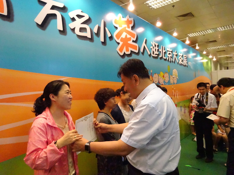 今年的“小茶人”活动,除了常规的“逛茶展,找茶趣“活动外,增加了更多精彩的体验式活动,比如邀请小茶人一起制作饼干、插花、制作山茶以及制作茶书签等动手活动和茶文化展示活动。展会期间适逢父亲节和端午节,我们邀请了部分小茶人和他们的父亲们共同参与”感恩父爱“活动,让他们在快乐和亲情温暖中感受茶文化的魅力;此外令人眼前一亮的“茶诗闪读”活动,利用创意快闪的方式,让孩子们齐齐朗读茶诗,在诗中感受文人爱茶情怀;展会期间的“小茶人系列活动”还包括茶故事大会、小茶人才艺展示、“写给2016年的你“、向山区孩子捐书等活动,中国茶叶流通协会常务副会长王庆,西城区副区长陈宁,西城区商务委党组书记王毅,东城区少年宫主任王岳,北京东城区雍和宫小学校长袁建平参与活动。孩子们的欢声笑语,为展会现场增添了不少明亮的色彩,在他们童真稚嫩的笑脸上,我们看到了中国茶文化传承与茶业发展的希望与明天!