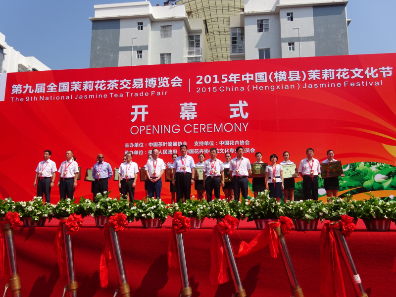 8月23日上午,由中国茶叶流通协会主办,中国花卉协会支持,横县人民政府、中花协花文化专委会承办的“第九届全国茉莉花茶交易博览会暨2015年中国(横县)茉莉花文化节”开幕式在广西横县——中国茉莉花茶交易中心举行。