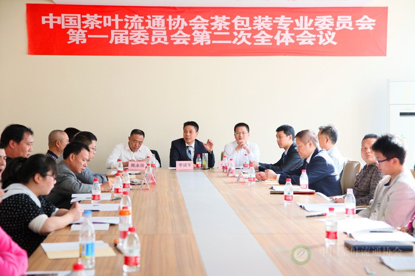 中国茶叶流通协会副秘书长朱仲海、中茶协包装专业委员会主任委员李建军、执行副主任委员陈永强、副主任委员张其勇、林渭枝、麦炎光、胡曦、秘书长程俊博、执行秘书长宋中南以及茶包装专委会委员们等共30余人出席会议。
