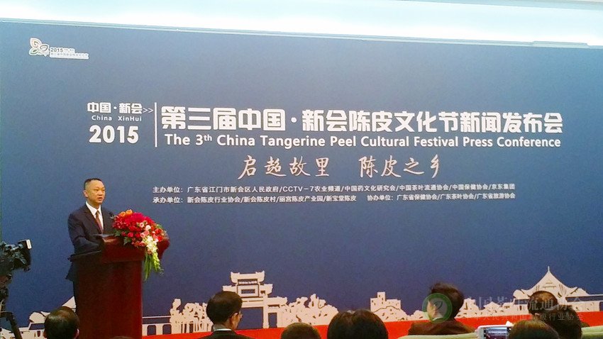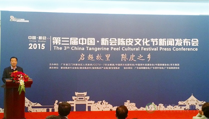 2015年10月28日上午,由中国茶叶流通协会、广州新会区人民政府等单位主办的第三届中国•新会陈皮文化节于人民大会堂召开新闻发布会,十届全国人大副委员长、中国关心下一代工作委员会主任顾秀莲,全国政协人口资源环境委员会主任贾治邦、中国茶叶流通协会常务副会长王庆等百余名领导、专家莅临现场。发布会吸引了各级领导与社会各界人士的广泛关注。