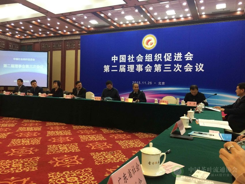 2015年11月26日上午,中国社会组织促进会在京召开了第二届理事会第三次会议,中国茶叶流通协会是社会组织促进会副会长单位,常务副秘书长姚静波出席了本次会议。审议并通过了促进会2015年工作报告、财务报告、人数及机构变更事项以及新增会员单位名单等。