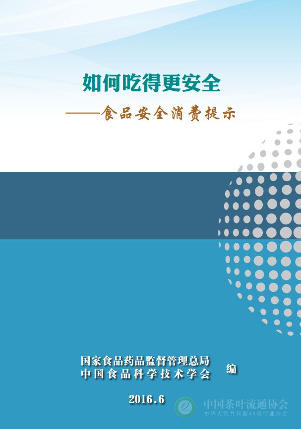 6月15日,由国家食品药品监督管理总局牵头,中国茶叶流通协会等15家国家级食品行业协会共同参与编制的《如何吃得更安全——食品安全消费提示》正式面向社会公开发布(材料下载地址链接:http://www.sda.gov.cn/WS01/CL0051/155980.html)。