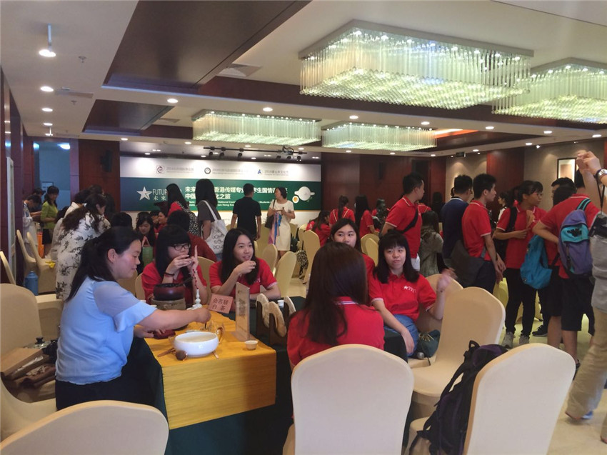 2016未来之星•香港传媒专业大学生国情课程班中国传统文化之旅活动是今年“两展一节”活动的重要组成部分之一。今年,主办方特地邀请香港大学生来到马连道京华茶业大世界,参观茶博物馆,观赏茶艺表演、品尝中国名茶,开展茶文化知识互动抢答,还为同学们开展了包括仿古瓷、彩绘脸谱、北京彩塑-画兔爷、传拓技艺等非物质文化遗产项目的体验和互动,让大家深入认识和了解中国传统文化,感受和体验中国传统文化的博大精深。