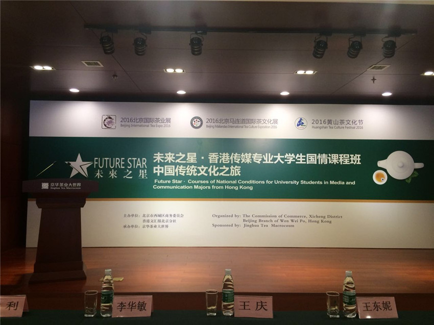 6月18日,2016未来之星•香港传媒专业大学生国情课程班中国传统文化之旅活动在马连道正式启动。百余位来自香港高校的大学生来到位于北京马连道茶叶街的京华茶业大世界,开展中国传统文化体验活动。中茶协常务副会长王庆、西城区区长助理王东妮、未来之星同学会相关领导出席活动。
