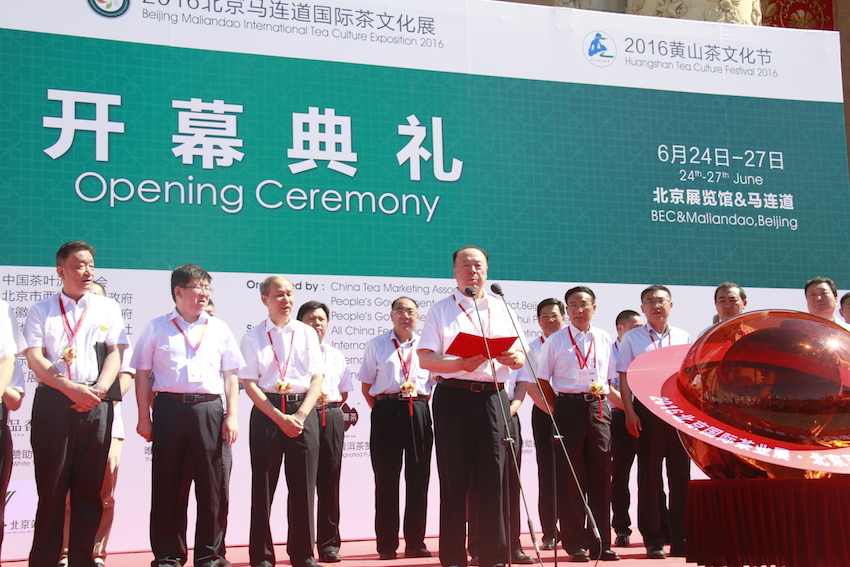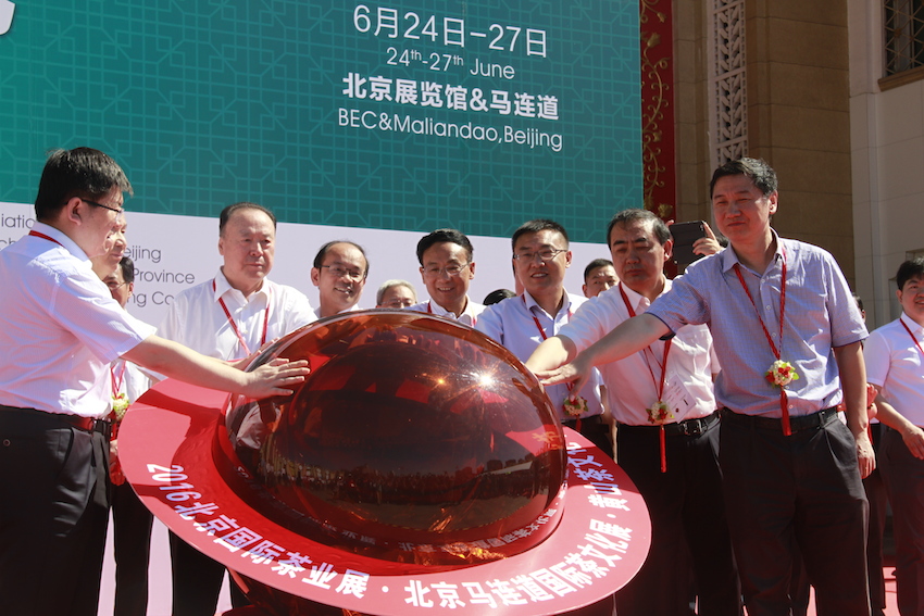 最后,第十届、十一届全国政协原副主席白立忱宣布“2016北京国际茶业展、2016北京马连道国际茶文化展、2016黄山茶文化节”正式开幕,并与中华全国供销合作总社邹天敬副主任、中国茶叶流通协会刘环祥会长、云南省茶叶流通协会陈勋儒会长、中共黄山市委任泽锋书记、北京市西城区卢映川书记、安徽省农委孙正东主任与北京展览馆张利总经理等领导共同启动2016“两展一节”开幕水晶球。