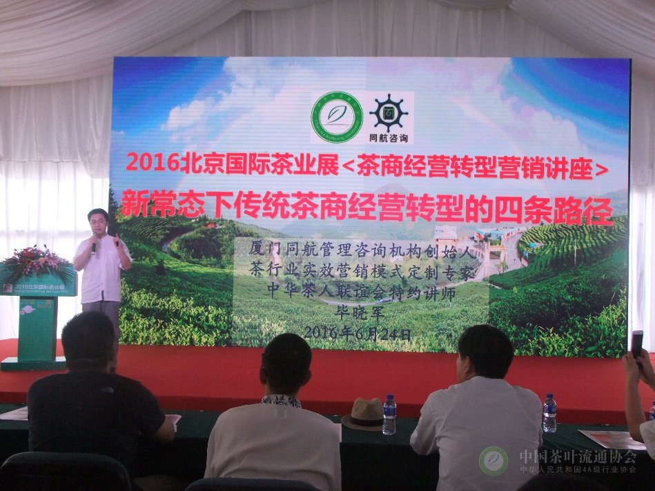 本次《新常态下,传统茶商经营转型路向何方?》营销讲座,是中国茶行业第一门聚焦传统茶商经营转型的原创实战课程,首次在北京茶博会登台亮相,获得圆满成功。传统茶商经营转型路漫漫!中国茶叶流通协会联合厦门同航咨询开设的本次传统茶商经营转型营销讲座,必将能够为传统茶商经营转型和突围制胜添加一份信心和动力!