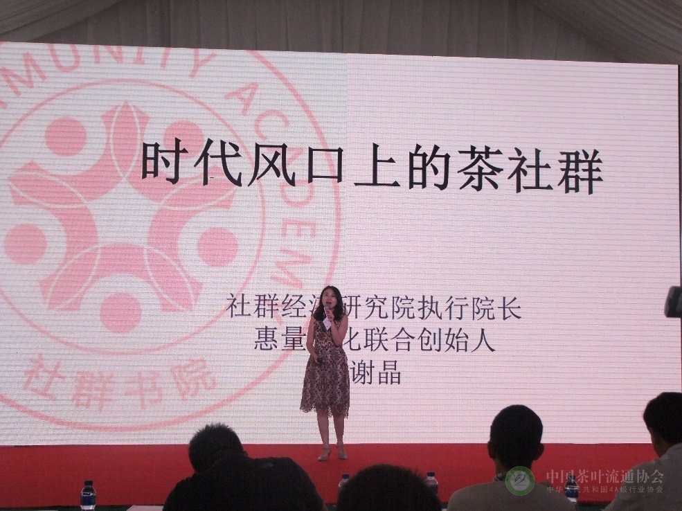 随后,谢晶老师分享《时代风口上的茶社群》主题演讲。她详细介绍了社群的价值与商业价值基础、从网红经济看内容与链接、社群为什么会成为互联网商业的土壤、茶主题空间的困境、品牌的形成与社群、茶馆&茶店的社群解决方案,并分享了青年茶人计划案例、以媒体的思路做活动、茶文化助力各产业转型升级的各种跨界活动,为现场茶商的茶生活社群运营指明了方向。