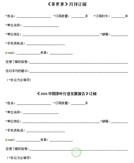 《茶世界》月刊订阅、《2016中国茶叶行业发展报告》订阅