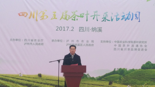 开幕式上,纳溪区委书记徐利致欢迎辞,并表示纳溪区将坚持立足于“特早、有机”两大资源禀赋,坚持“品质、品牌、品位”三大发展理念,突出“基地、龙头、市场、增收”四个重点,有力地推动了茶产业健康、快速发展。泸州市委副书记、市长刘强在发言中指出,泸州要抢抓省委、省政府“打造千亿茶产业”的战略机遇,充分发挥“特早、有机”的独特优势,大力发展优质特早茶产业。四川省农业厅副厅长涂建华肯定了泸州重视茶叶发展,纳溪区茶叶更是取得了飞跃式、跨越式发展,在促进农民增收、农业增效,一二三产业融合发展方面取得的成绩,并宣布“2017四川第五届茶叶开采活动周暨全民饮茶日活动”正式开始。