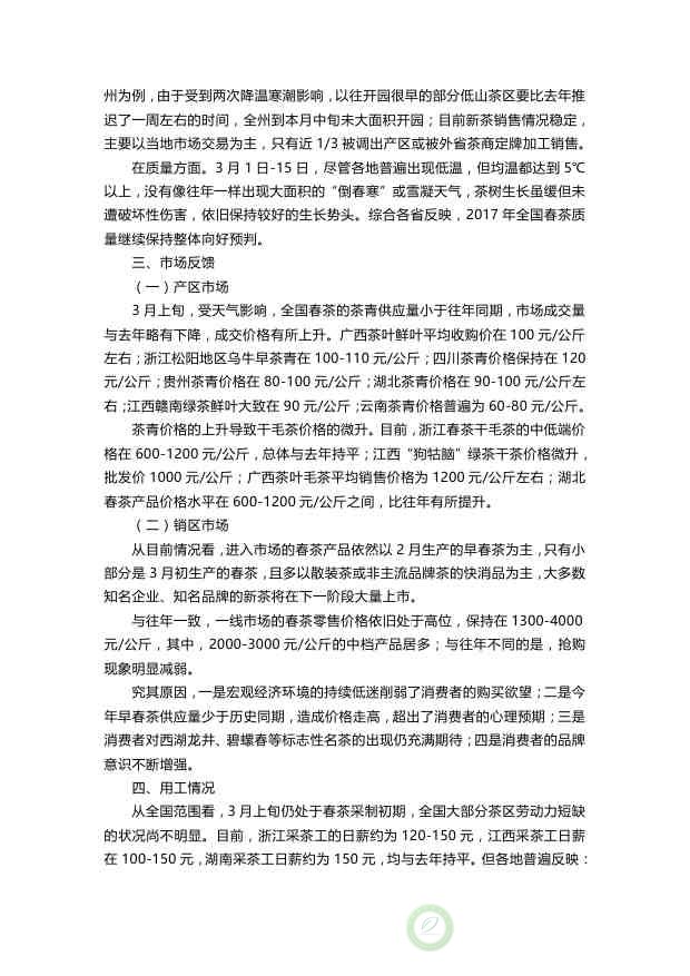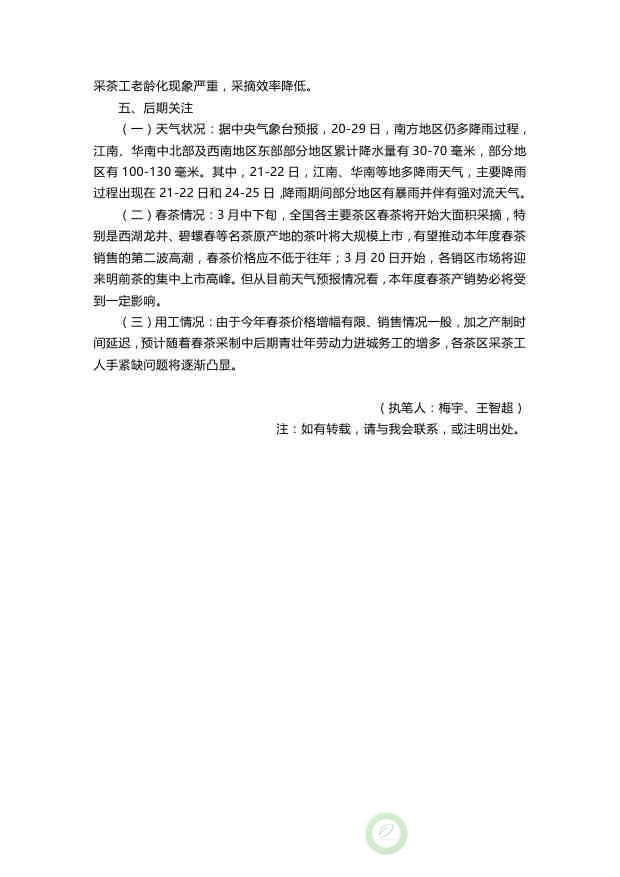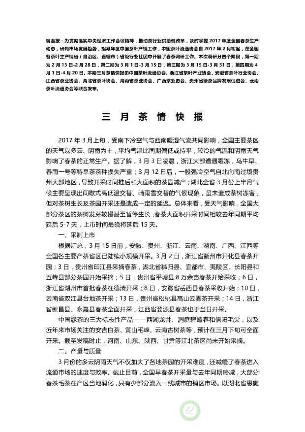 中茶协发布三月茶情快报